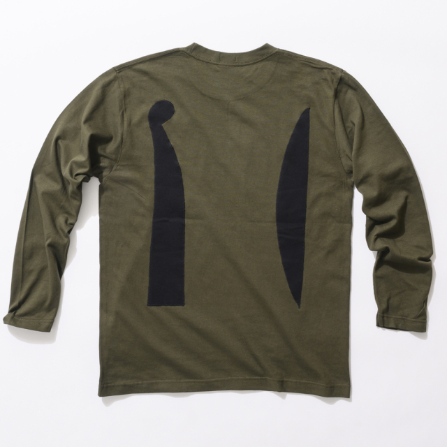 ジャケットの下に着るのにちょうどよいアクセントが楽しい長袖が入荷しました。秋の定番色カーキ色のTシャツに、シンプルだけど不思議なかたちが印象的な一枚。