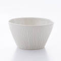 ほのかに青みを帯びた落ち着きのある白に、丁寧にしのぎの柄を施した鉢。シンプルでありながら凛とした佇まいなので、空間にとけ込みながらもしっかりと料理を引き立てます。しっかりと深さがあるので、汁気のある副菜やフルーツ、サラダはもちろん、小腹を満たしたい時の小丼ぶりがわりにも大活躍します。