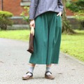 春夏は一枚で涼しく、秋冬はタイツやレギンスなどで合わせたり、オールシーズン仕様としてお楽しみいただけます。トップスはシンプルカラーを、藍緑のボトムスをメインとしたスタイリングがおすすめです。