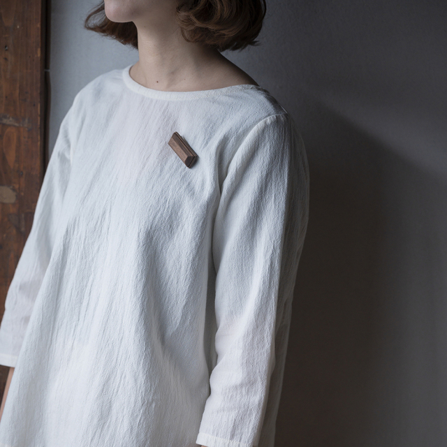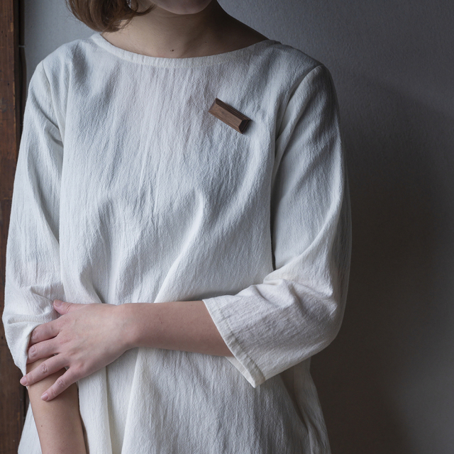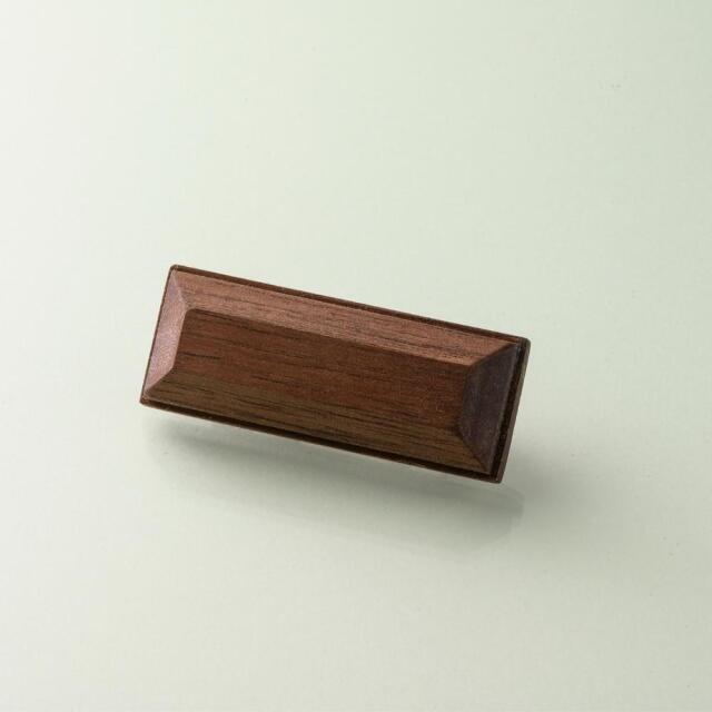 カットを施した立体的なデザインは、まるで木の宝石。木のナチュラルな姿はお洋服のワンポントにカジュアルからエレガントなスタイルまで幅広く合いそうですね。お気に入りのブローチや同じシリーズの正方形ブローチと重ね付けして楽しむのも良いですね。いつものスタイルにプラスしてさりげなくコーディネートをアップグレードしてくれることでしょう。ウォルナットは焦茶色が特徴的で、その重厚感ときめ細やかな木肌から高級木材として人気があります。木目を活かした蜜蝋塗装で仕上げ。ほんのりとした木の香り、質感、木目は同じものはひとつとしてありません。
