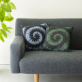 椅子敷きや小座布団では定番の人気柄ですが、より気軽に使えるようにとクッションカバーに。大胆なぐるぐる文様がチャーミングで、目を惹く作品です。