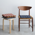 そんな山内さんが生み出す布製品は、伝統的な型染めならではのやさしい肌ざわりや通気性の良さ、色の鮮やかさはそのままに、現代の暮らしにも馴染むモダンなデザインが魅力。丸や四角を組み合わせた幾何学模様や伝統の和柄をアレンジしたぬくもり感あふれる柄は、つい手に取ってみたくなる愛らしさに満ちています。色とりどりの染め物たちが、暮らしを楽しく彩ってくれます。