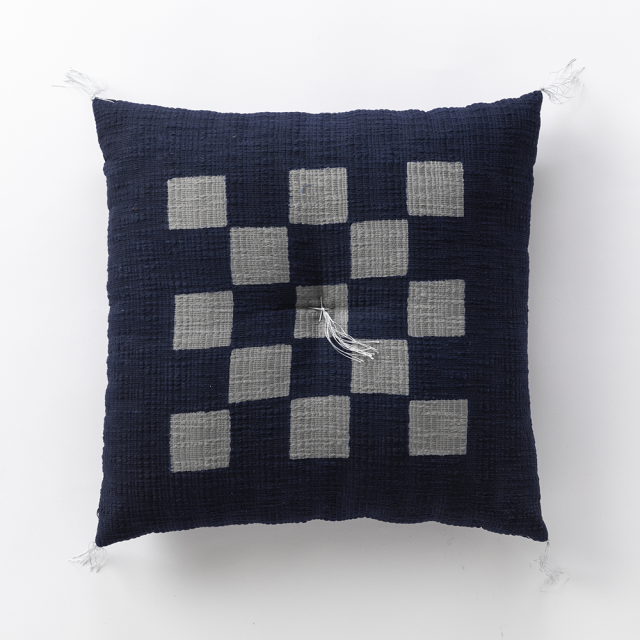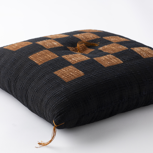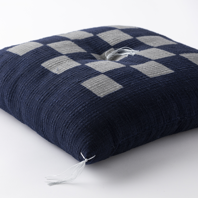 静岡県浜松市に染色工房を構える山内武志さんは、型作りから型染めまでの工程のほとんどを手がけます。型染めの小座布団は、人気の定番品で、「グログラン」と呼ばれる平織りの上質な綿を使い型染めし、布団職人による丁寧な縫製で仕上げられた手間暇のかかった作品です。手ざわりがよく、弾力が心地よい型染めの小座布団は、現代のインテリアにマッチする美しさを持ち、世代を超えて支持をされている定番の品です。