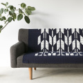 矢羽根がモダンな印象。大判の型染めインテリア布