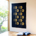 テーブルクロスとしても、ベッドやソファにさっと掛けると空間がきりりと締まります。吹き抜けにタペストリーとして飾ってもよいかもしれませんね。いろいろ使える型染めの多用布は、一つあるととても便利です。