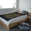 ベッドやソファにさっと掛けると空間がきりりと締まります。吹き抜けにタペストリーとして飾ってもよいかもしれませんね。いろいろ使える型染めの多用布は、一つあるととても便利です。