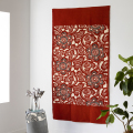 ベッドやソファにさっと掛けると空間がきりりと締まります。吹き抜けにタペストリーとして飾ってもよいかもしれませんね。いろいろ使える型染めの多用布は、一つあるととても便利です。