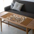 テーブルセンターや花瓶敷きに使われてきた卓布(たくふ)。山内武志さんの型染めの卓布は、従来の古臭さや重々しい雰囲気ではなく、民藝の格調はそのままに現代生活に取り入れやすいインテリア布。40cm巾で大きめの卓布は、タペストリーとして壁に飾ってもよいでしょう。堅苦しく考えず、好きなように飾れば、日々の暮らしに彩りを添え愉しみを加えてくれます。