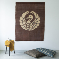 扉1枚ほどの大きなサイズ。壁に飾ってもよいですし、風通しをよくしたいお部屋に簾(すだれ)のように使っても、間仕切りにも。麻ですので、ほどよい透け感をお楽しみいただけます。