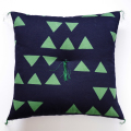 浜松市に工房を構える、山内武志さんによる型染めの小座布団。山内さんの定番である「うろこ」と呼ばれる三角の連続模様が続く、愛らしい柄です。手彫りの型のため、幾何学模様も独特のゆらぎがあり、味わい深い仕上がりとなっています。