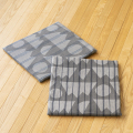 それまでの長年の経験がその域に辿り着いたことを感じとれるような、美しく現代的なシリーズです。はっとするような、線と色の組み合わせですが、主張があるというより空間を引き立たせます。誠実な仕事ぶりを感じる山内さんの型染めの暮らし品は、豊かに過ごす時間をつくりだしてくれます。