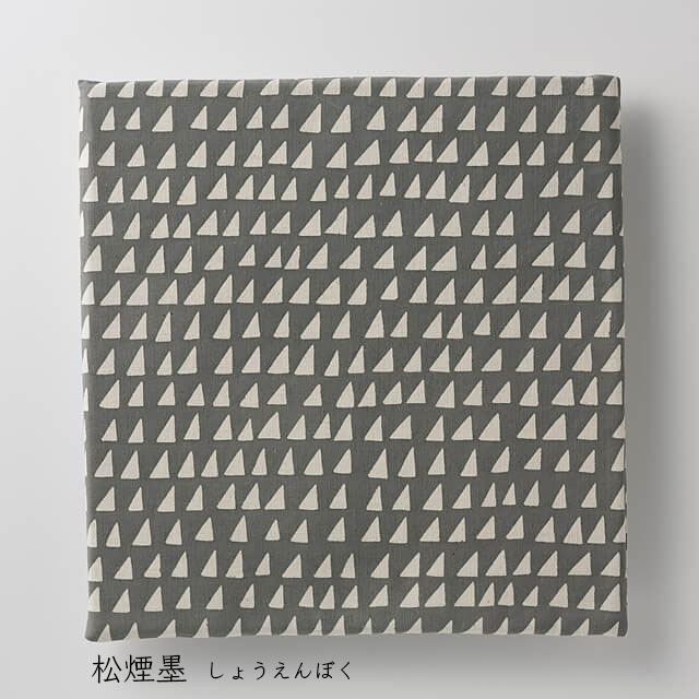 「鱗(うろこ)」と呼ばれる伝統的な三角様をアレンジした一枚。ランダムに並ぶ三角のかたちが一つひとつ微妙に変化するのも手彫りの型ならでは。鷹揚でどこかほがらかに感じる柄や色は、山内武志さんのお人柄そのままのような印象を感じます。