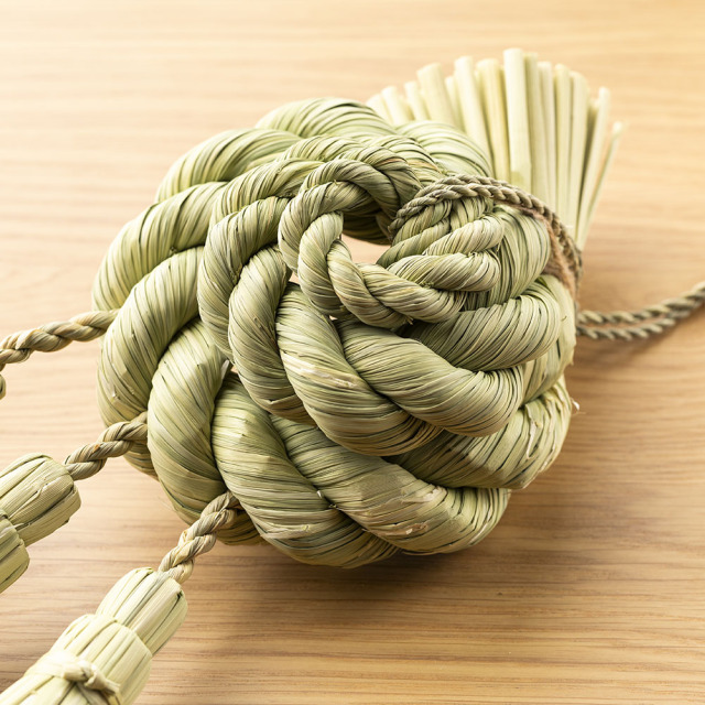 一本の縄を綯い(ない)ぐるぐると螺旋状に巻いたしめ飾り。力強い美を感じます。「人の輪」を表すという輪が重なり、たくさんの良いご縁があるようにとの願いが込められています。